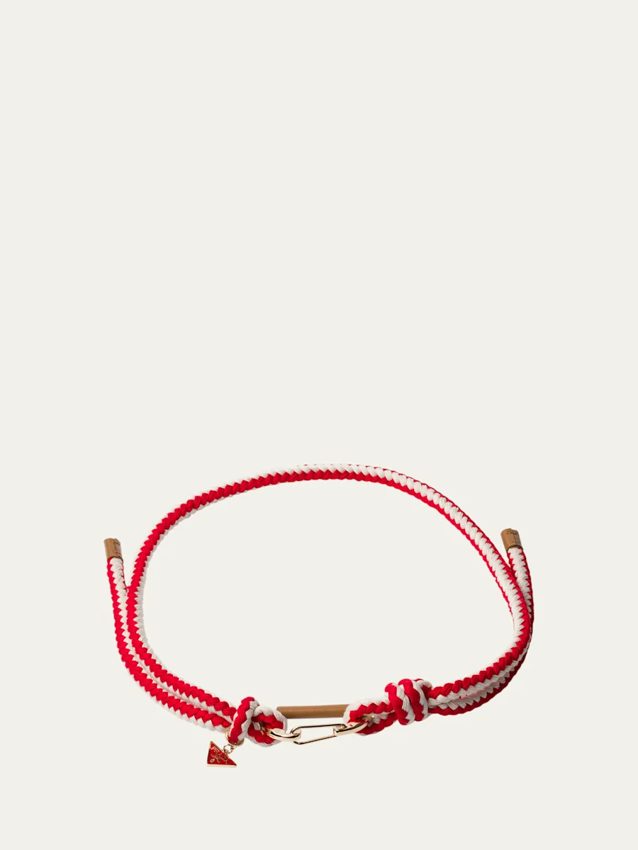 Prada braided rope belt with signature triangle logo charm accent Clasp closure Cotton/brass Made in Italy