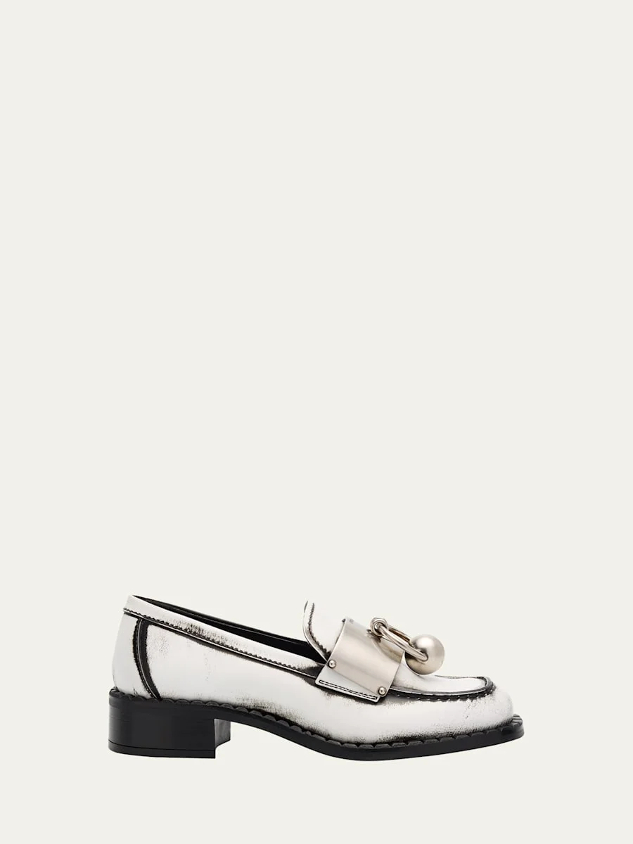 Brushed Leather Ball Chain Loafers