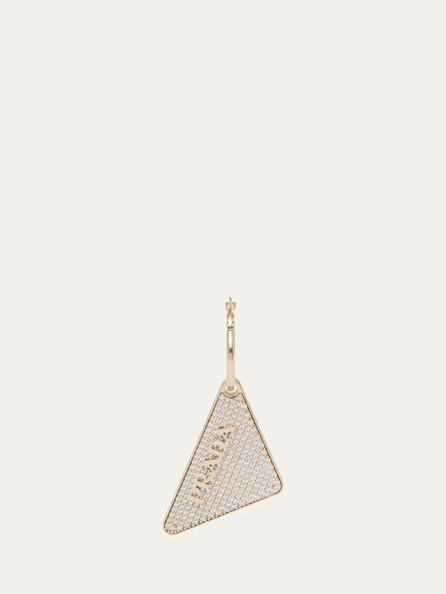 Prada single earring in sterling silver and crystal 925 sterling silver illuminated with zircons palladium finish visible triangle logo earring Hypoallergenic and nickelfree materials Prada plays with its most iconic shape, the triangle, which results in precious new details. Left ear specific Clipon back Sold individually Made in Italy