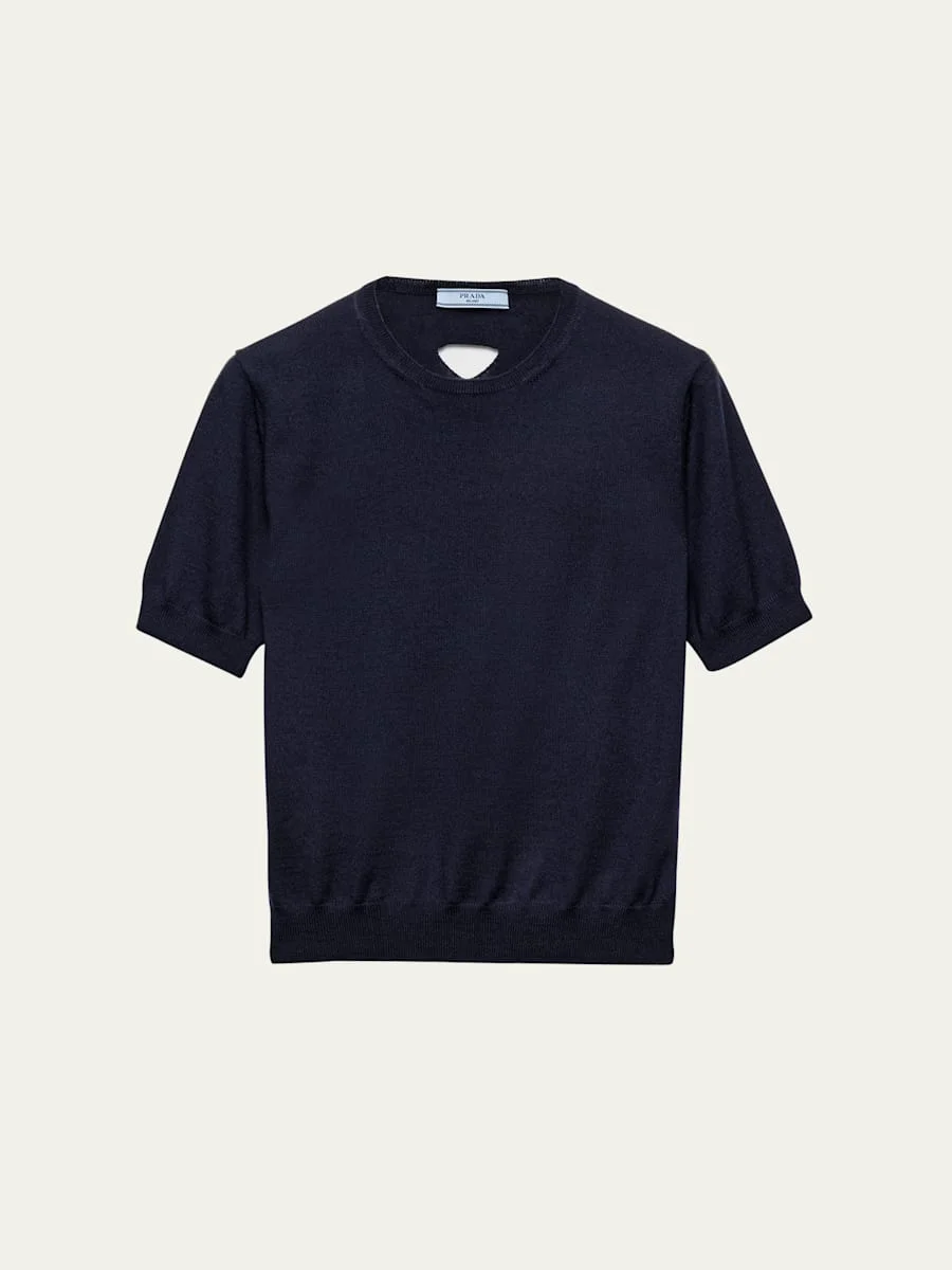 Cutout Triangle Short-Sleeve Wool Sweater