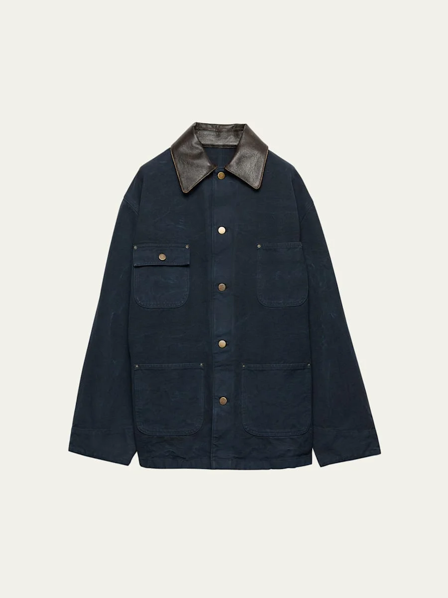 Leather-Collar Canvas Utility Jacket