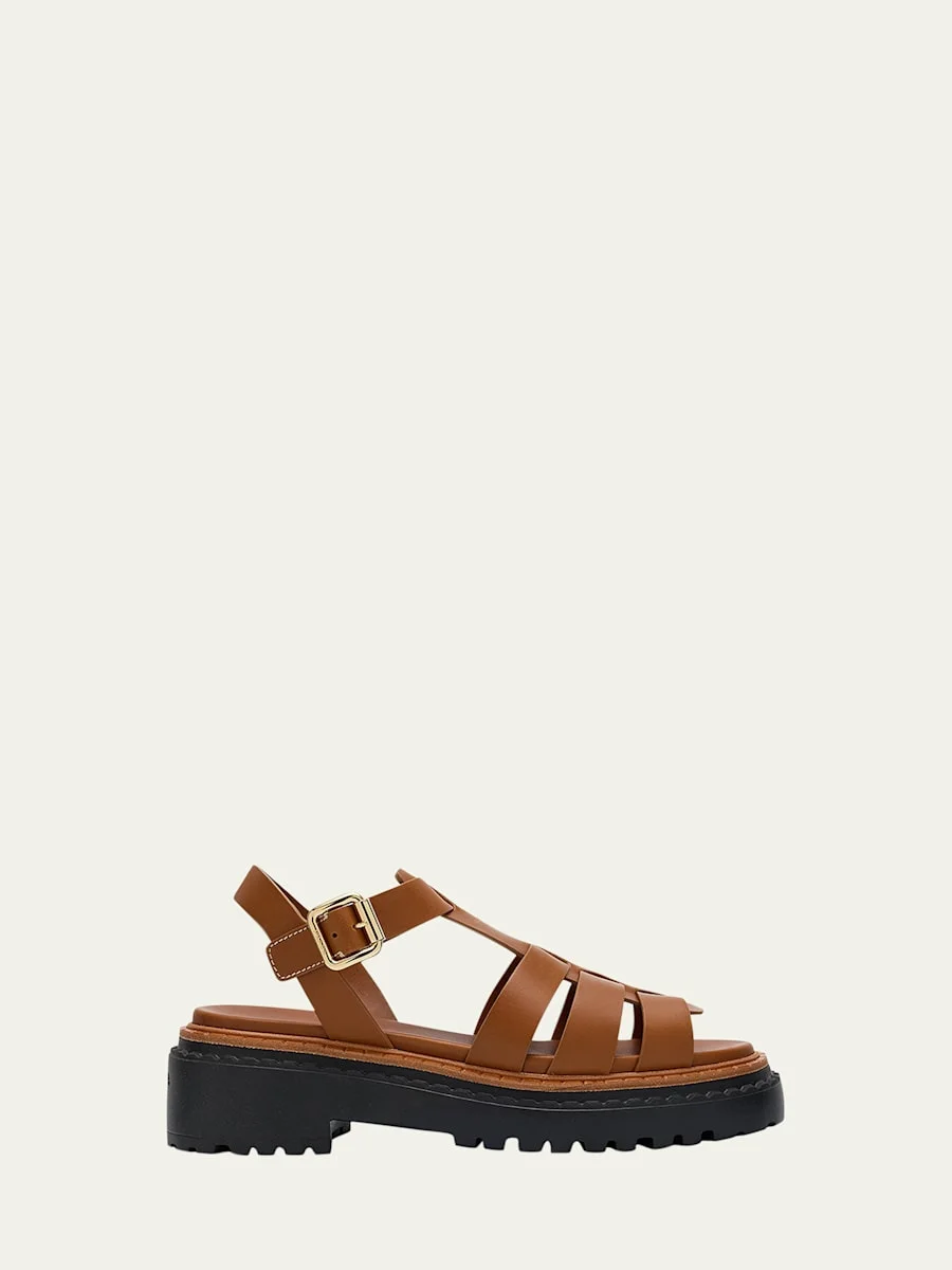 Prada sleek calf leather fisherman sandals with logo stamp 2.25 in / 55 mm platform heel Open toe Caged vamp Dual adjustable ankle buckle straps Rubber outsole Professional cleaning recommended, spot clean Made in Italy Online Inquiries: BGS21_X6SPU| Store Inquiries: #4942121