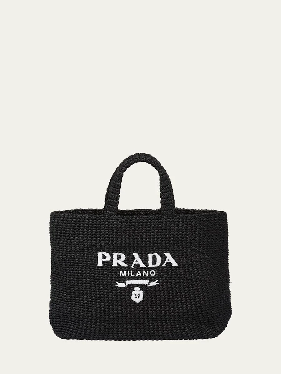 Prada shoulder bag in two-tone, striped raffia-like recycled nylon, resin, and calf leather Features embroidered logo at front Detachable chain top handle Detachable, adjustable web shoulder strap; detachable zip pouch Removable embossed logo tag Zip top closure Approx. 9"H x 5"W x 2"D Made in Italy Online Inquiries: BGS21_V60AU| Store Inquiries: #4116374
