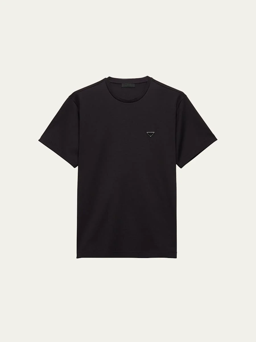 Prada Tshirt in interlock cotton for a premium, durable finish Signature enameled triangle logo on the chest Crew neckline Short sleeves Pullover style Cotton Hand wash, professional cleaning recommended Made in Italy
