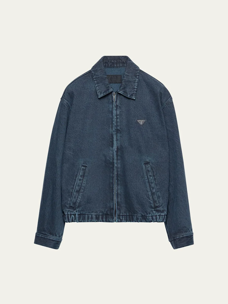 Crafted from overdyed denim, this jacket by Prada features subtle fading and distressing along the hem Shirt collar; front zip Dropped shoulders Long sleeves; button cuffs Yoked back Relaxed fit Hip length Cotton Hand wash or machine wash cold, wash inside out and separately Made in Italy Online Inquiries: BGS21_NDT4M| Store Inquiries: #5080009