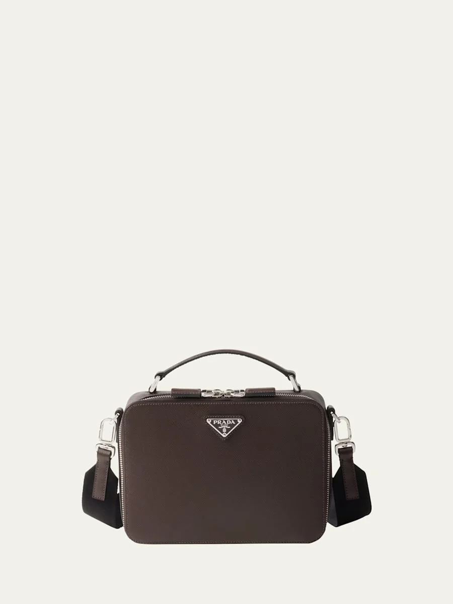 Men's Saffiano Leather Brique Crossbody Bag w/ Nylon Strap