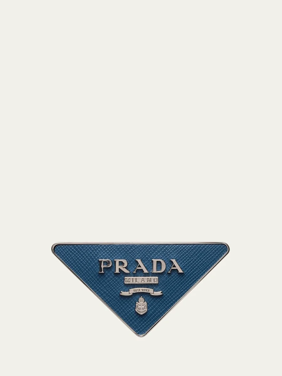 Prada belt buckle in Saffiano leather features the signature triangle logo motif Adjustable fit Belt sold separately Stainless steel Approx. 1.4"H Made in Italy