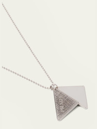 Prada necklace with two triangle logo charms Sterling silver bead chain and charms Necklace length: approx. 26 inches Lobster clasp Made in Italy