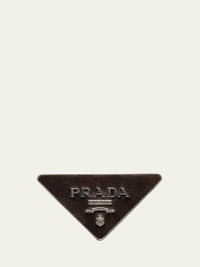 Prada belt buckle in calf suede featuring the signature triangle logo design Approx. 1.37"L Pushpin closure Please note: belt strap sold separately Suede Made in Italy