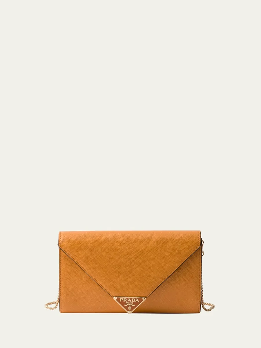 Mini Envelope Flap Saffiano Leather Wallet on Chain