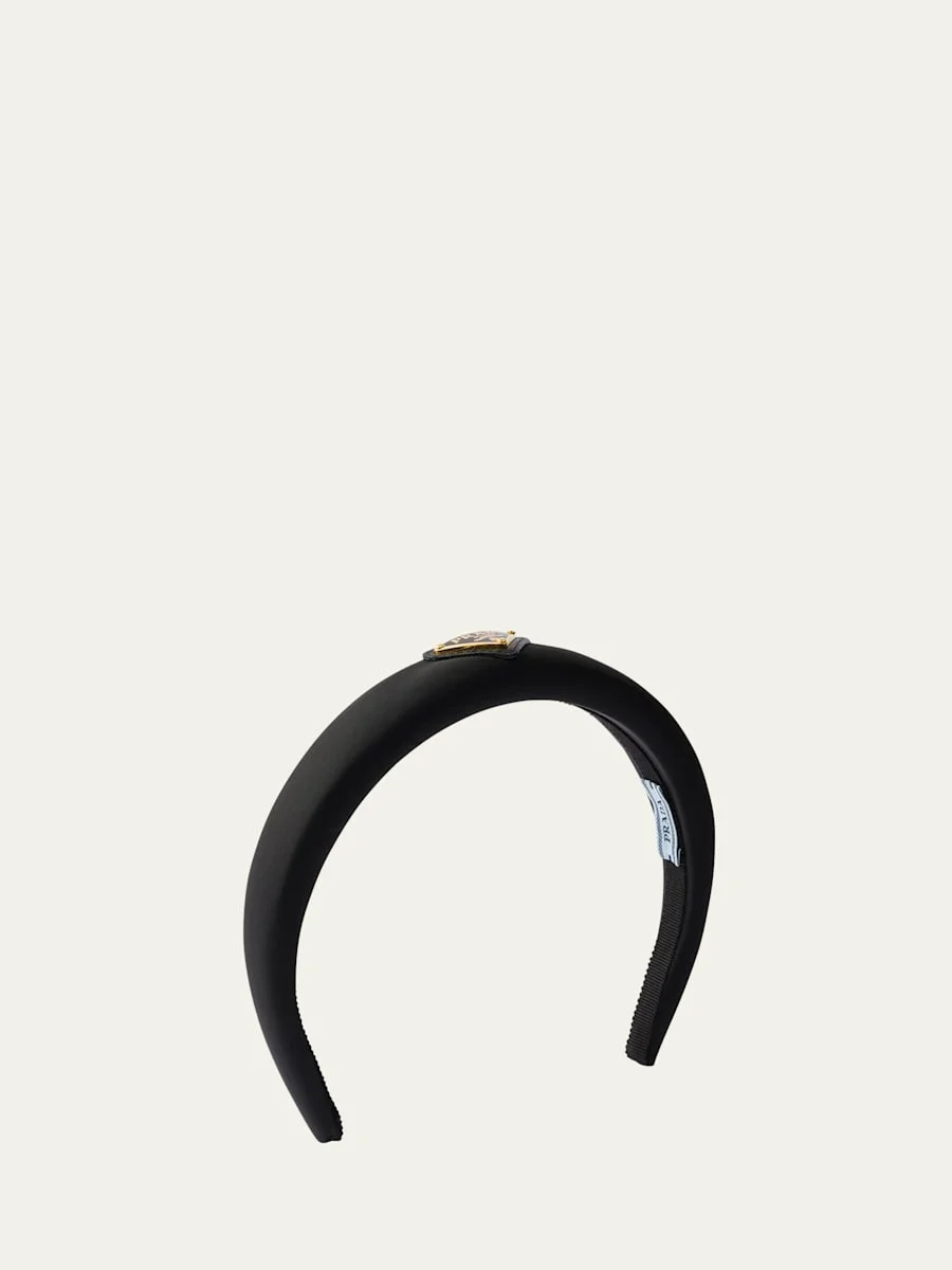 Prada ReNylon padded headband with signature triangle logo ReNylon is a regenerated nylon yarn crafted from recycled, purified plastic materials recovered from the oceans, fishing nets, and fabric fibers. Made in Italy