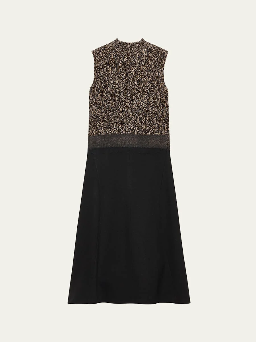Shetland Mouline Sleeveless Two-Tone Midi Dress