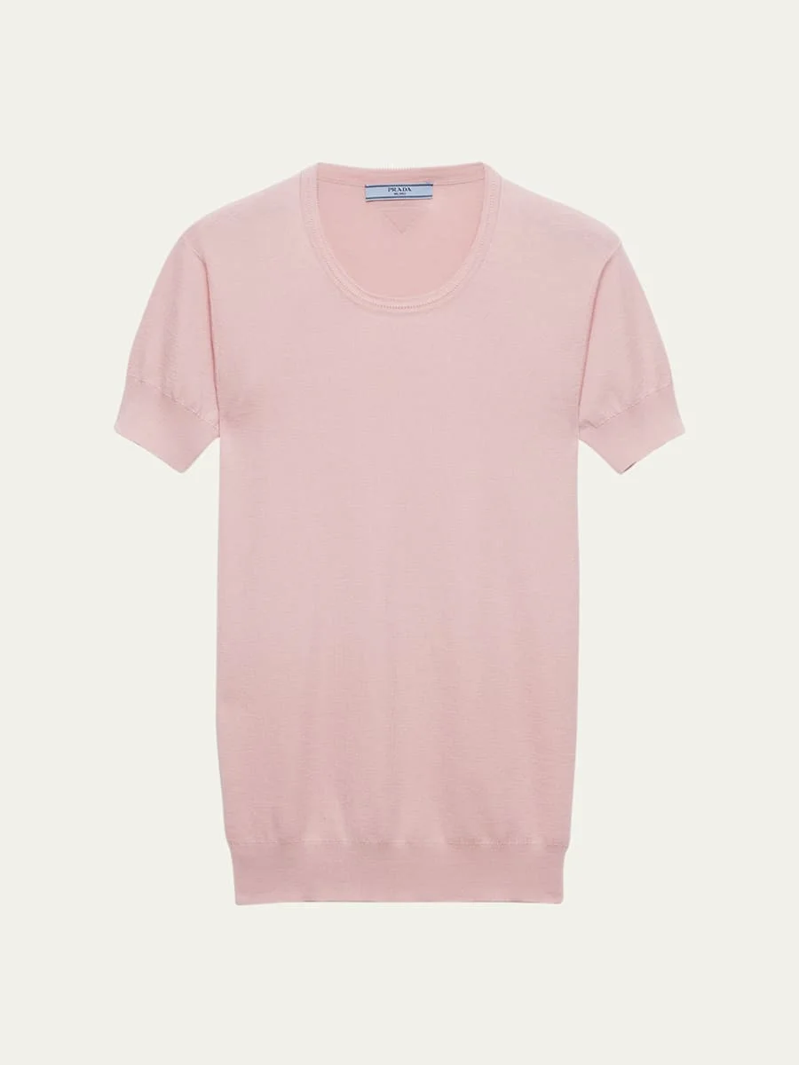 Silk-Cotton Short-Sleeve Sweater