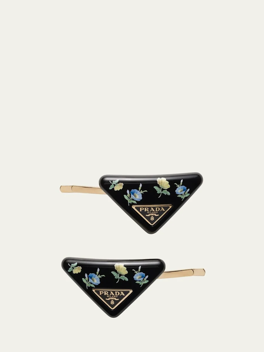 Prada floral signature triangle bobby pins in brass and iron Set of two Made in Italy