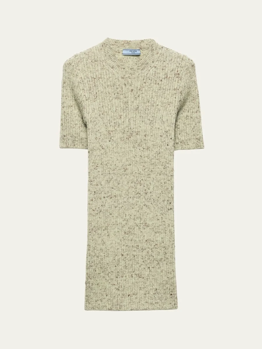 Prada's longline sweater is defined by its marled knit, offering a subtle, dimensional design. Crew neckline Short sleeves Straight hem Tunic length Fitted Pullover style Virgin wool/linen/nylon/polyamide Dry clean Made in Italy