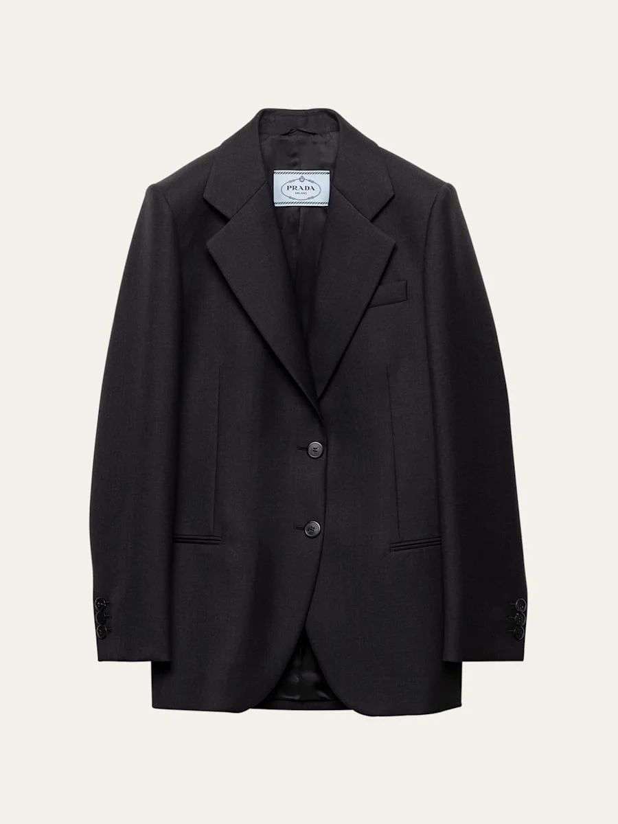 Wool Gabardine Single-Breasted Blazer