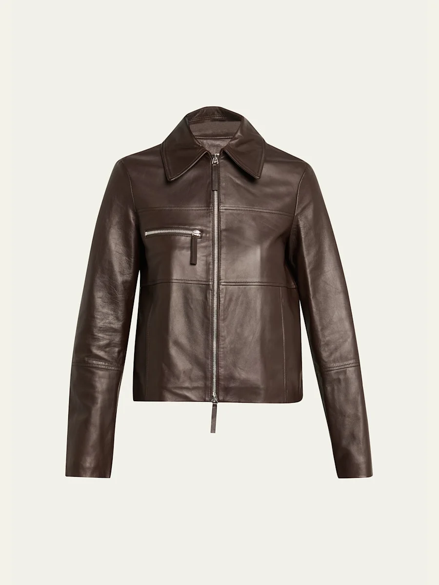 Crafted from smooth, genuine leather, the "Annabel" jacket by Proenza Schouler features paneled construction with a clean silhouette. Point collar; two-way zip-front Long sleeves with zip cuffs Chest zip pocket Side slip pockets Classic fit Hem sits at the hip Leather Professional cleaning recommended Imported Online Inquiries: BGS21_T87N1| Store Inquiries: #5248647