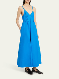 Proenza Schouler White Label "Barker" stretch poplin maxi dress V neckline Adjustable spaghetti straps Side seam pockets Adjustable self-tie back A-line silhouette Full length Invisible back zip Cotton Dry clean Imported Online Inquiries: BGS21_T6LK0| Store Inquiries: #5004708