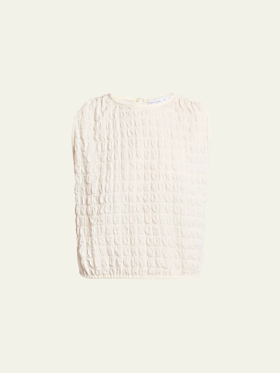 Proenza Schouler "Bradley" top crafted from a textured cotton blend Crew neckline Sleevelss Boxy fit Hem falls to the hip Back keyhole closure Polyester/spandex Dry clean Imported SIZE amp; FITModel measurements: 5'10" tall Model is wearing a US size 4/Small