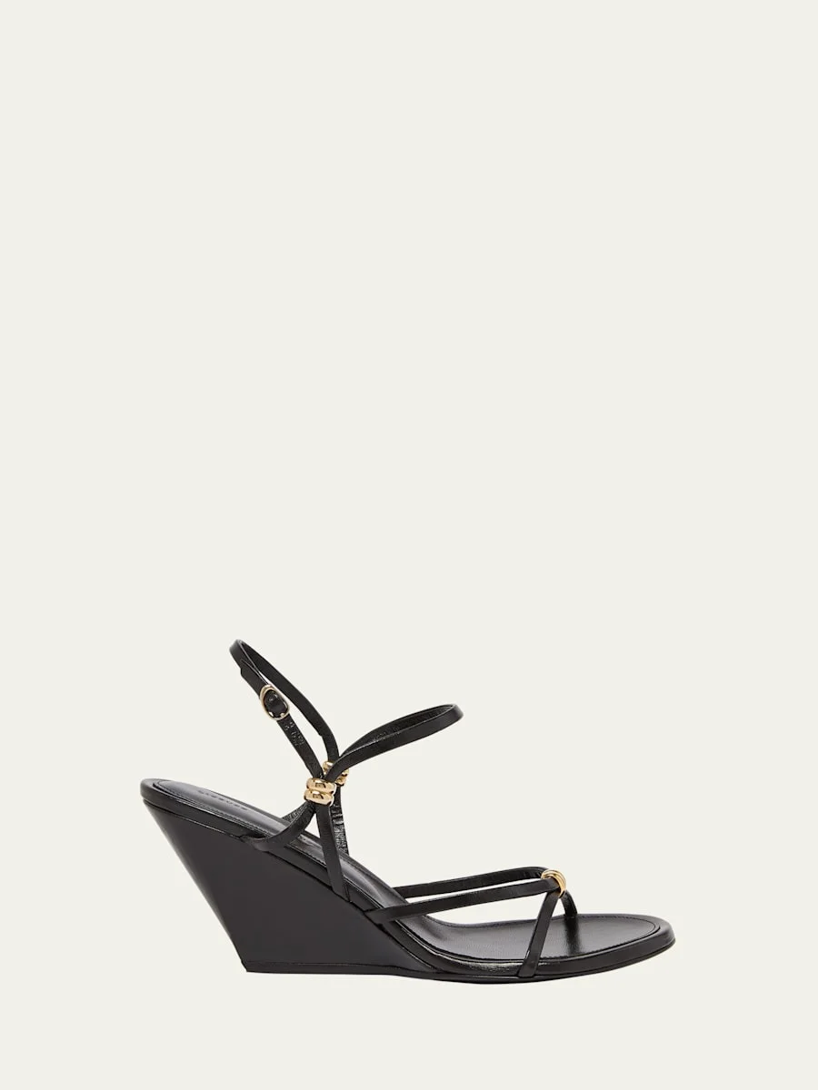 Coil Buckle Ankle-Strap Leather Wedge Sandals