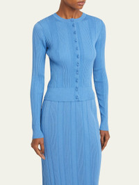 Proenza Schouler "Currin" top in ribbed fabric Crew neckline Button closure Long sleeves Column silhouette Acetate/nylon/polyamide Dry clean Imported Online Inquiries: BGS21_BA4H0| Store Inquiries: #5033378