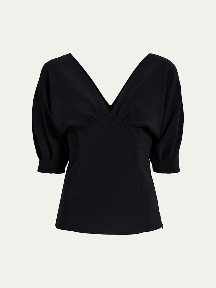 Crafted in compact stretch-crepe, the "Darena" top by Proenza Schouler is finished with gathered sleeves and a wide neckline. V neckline Short sleeves Classic fit Hem sits at the hip Pullover style Polyester/polyurethane Professional cleaning recommended Made in Portugal Online Inquiries: BGS21_T8XAD| Store Inquiries: #5479327