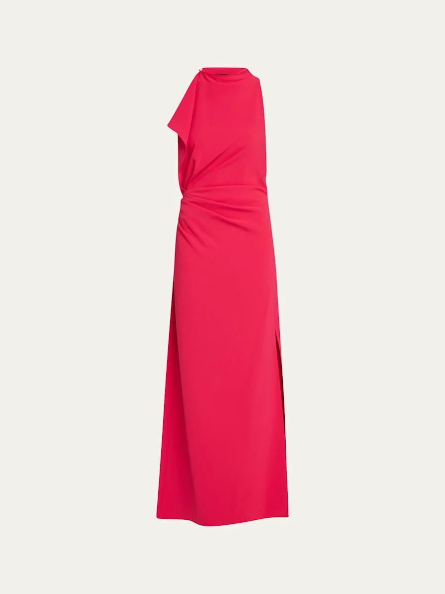Proenza Schouler "Devyn" side draped dress crafted from matte double crepe and enhanced with drop armholes High asymmetric neckline; shoulder button closure Sleeveless Falls below the ankle Sheath silhouette Zip closure Triacetate/polyester Lining: Viscose Dry clean Imported Online Inquiries: BGS21_BA4GZ| Store Inquiries: #5033377