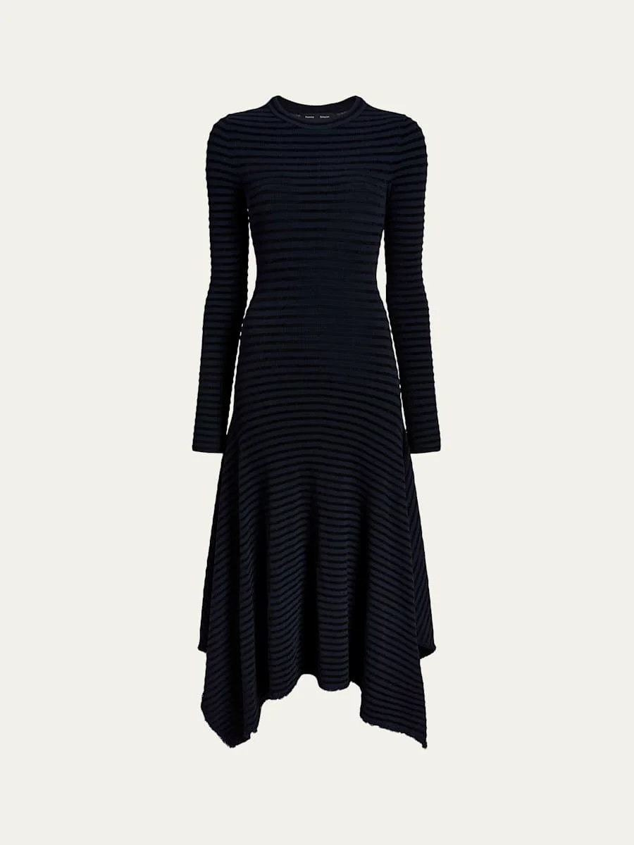 Accented with tonal velvet stripes, the "Didi" midi dress by Proenza Schouler is finished with an asymmetric handkerchief hem for an edgy touch. Crew neckline Long sleeves Slim silhouette Hem falls below the knee Slipover style Viscose/polyester Professional cleaning recommended Imported Online Inquiries: BGS21_T8WER| Store Inquiries: #5462904