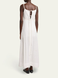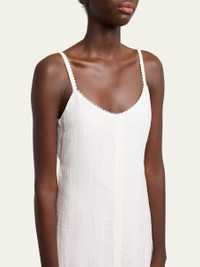 Proenza Schouler White Label "Evelyn" crinkled viscose maxi dress finished with scalloped trim Scoop neckline Sleeveless A-line silhouette Hem falls below the knee Self-tie back Viscose/polyester Dry clean Imported Online Inquiries: BGS21_T6LJU| Store Inquiries: #5004702