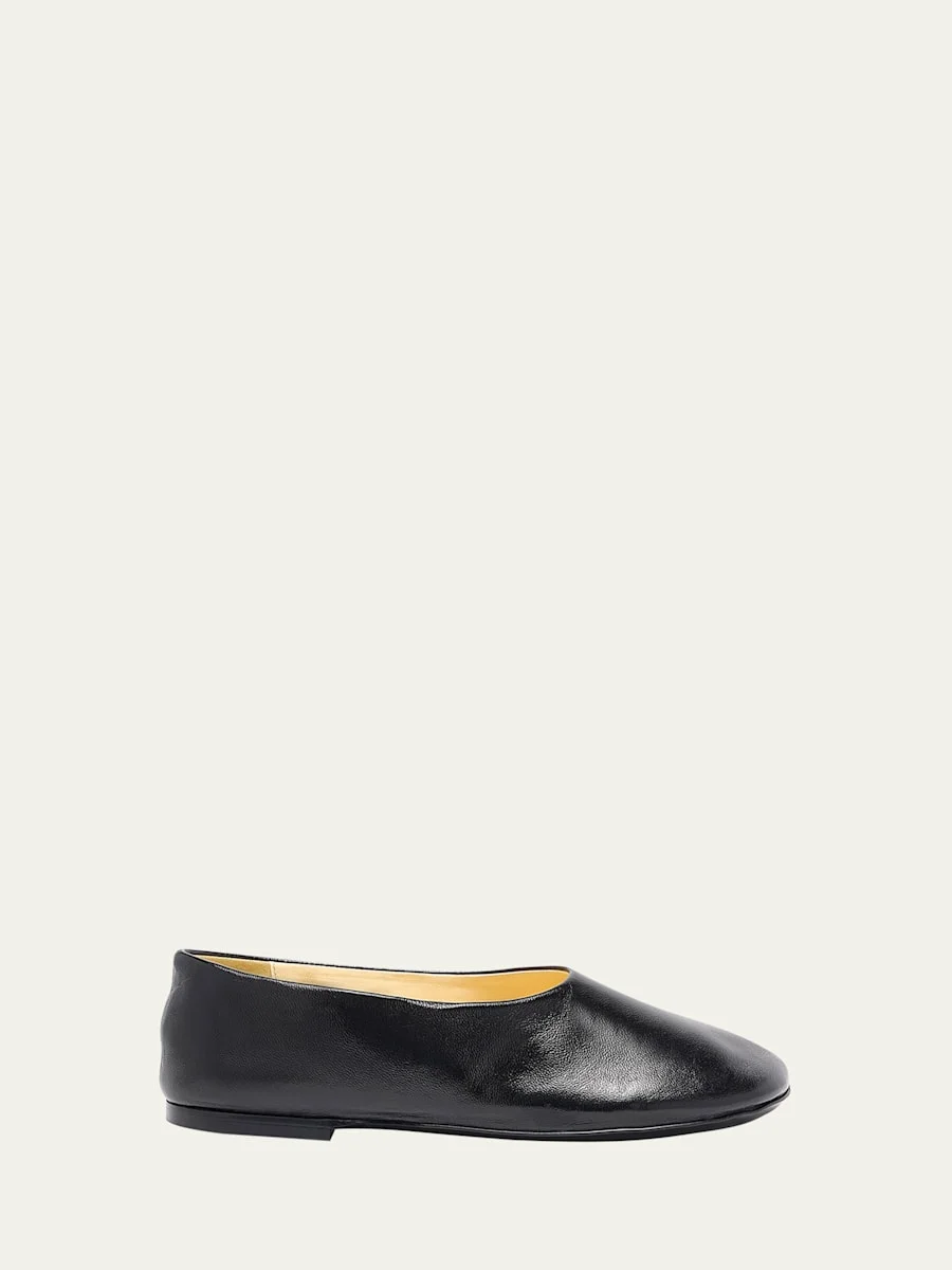Proenza Schouler "Glove" soft lambskin leather high-cut ballerina flats 0.17 in / 5 mm flat heel Round toe Slip-on style Rubber outsole Lining: Unlined Made in Italy Online Inquiries: BGS21_X6WEB| Store Inquiries: #5018593
