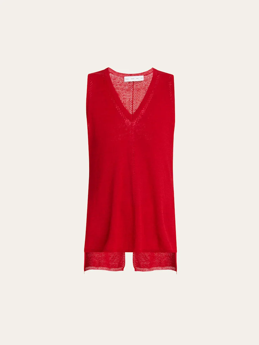 Proenza Schouler PSWL "Heyde" fine knit sweater featuring a split back Crew neckline Sleeveless Classic fit Hem falls to the hip Pullover style Linen/nylon/polyamide Dry clean Imported Online Inquiries: BGS21_T6GAN| Store Inquiries: #4979082