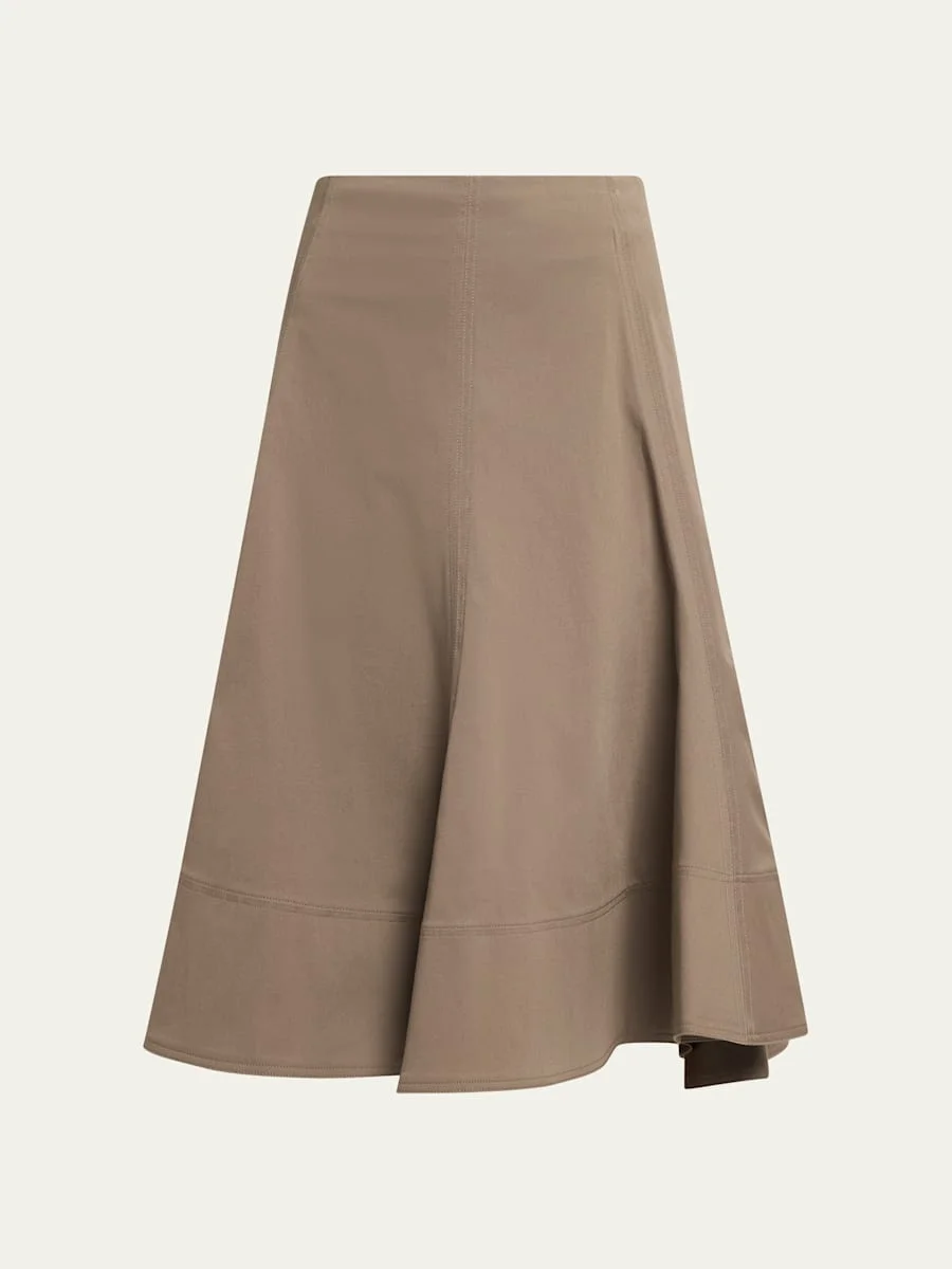 Proenza Schouler White Label "Janan" paneled midi skirt crafted from cotton canvas. High rise Circlecut silhouette Highlow hem Center back zip Cotton/elastane Dry clean Made in Poland SIZE amp; FITModel measurements: 5'10" tall Model is wearing a US size 4/Small