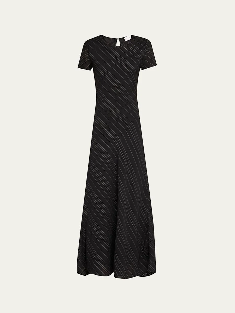 Joss Woven Stripe Short-Sleeve Maxi Dress