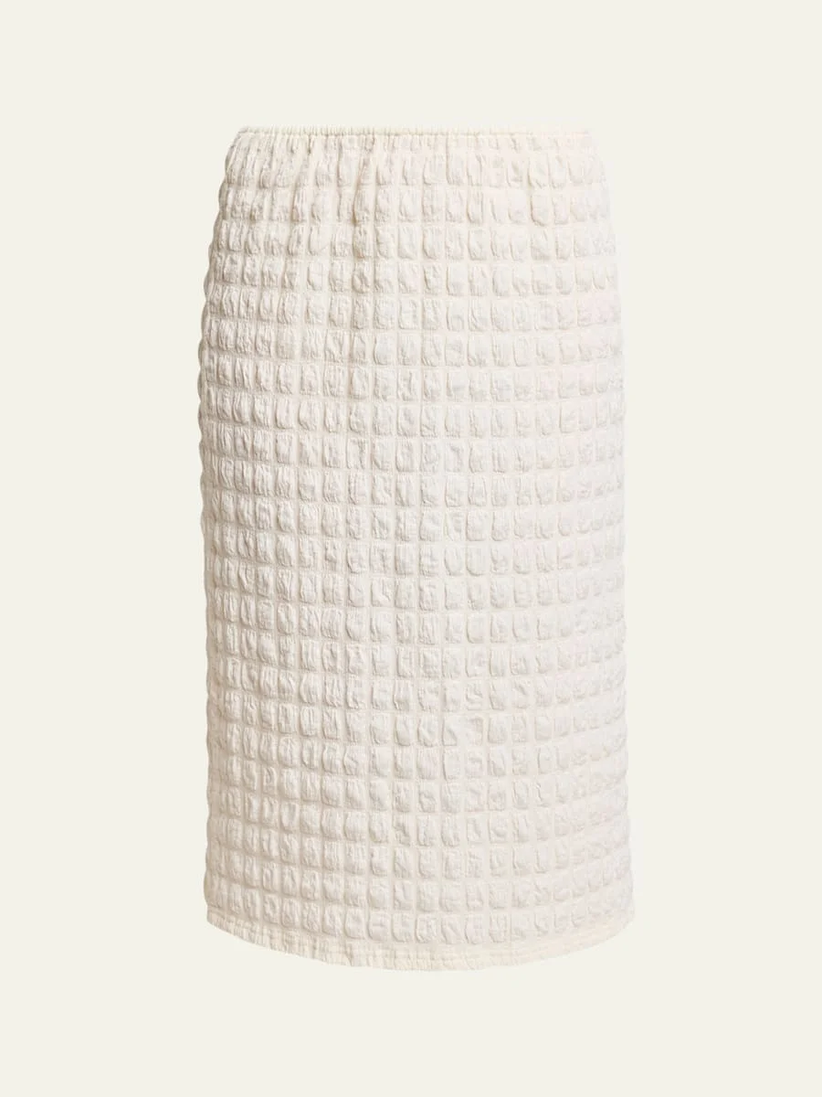 Proenza Schouler "Lori" midi skirt crafted from a textured cotton blend Lowrise; sits at the hip Skirt falls straight from hip to hem Hem falls below the knee Pullon style Cotton/polyester/spandex Dry clean Imported SIZE amp; FITModel measurements: 5'10" tall Model is wearing a US size 4/Small