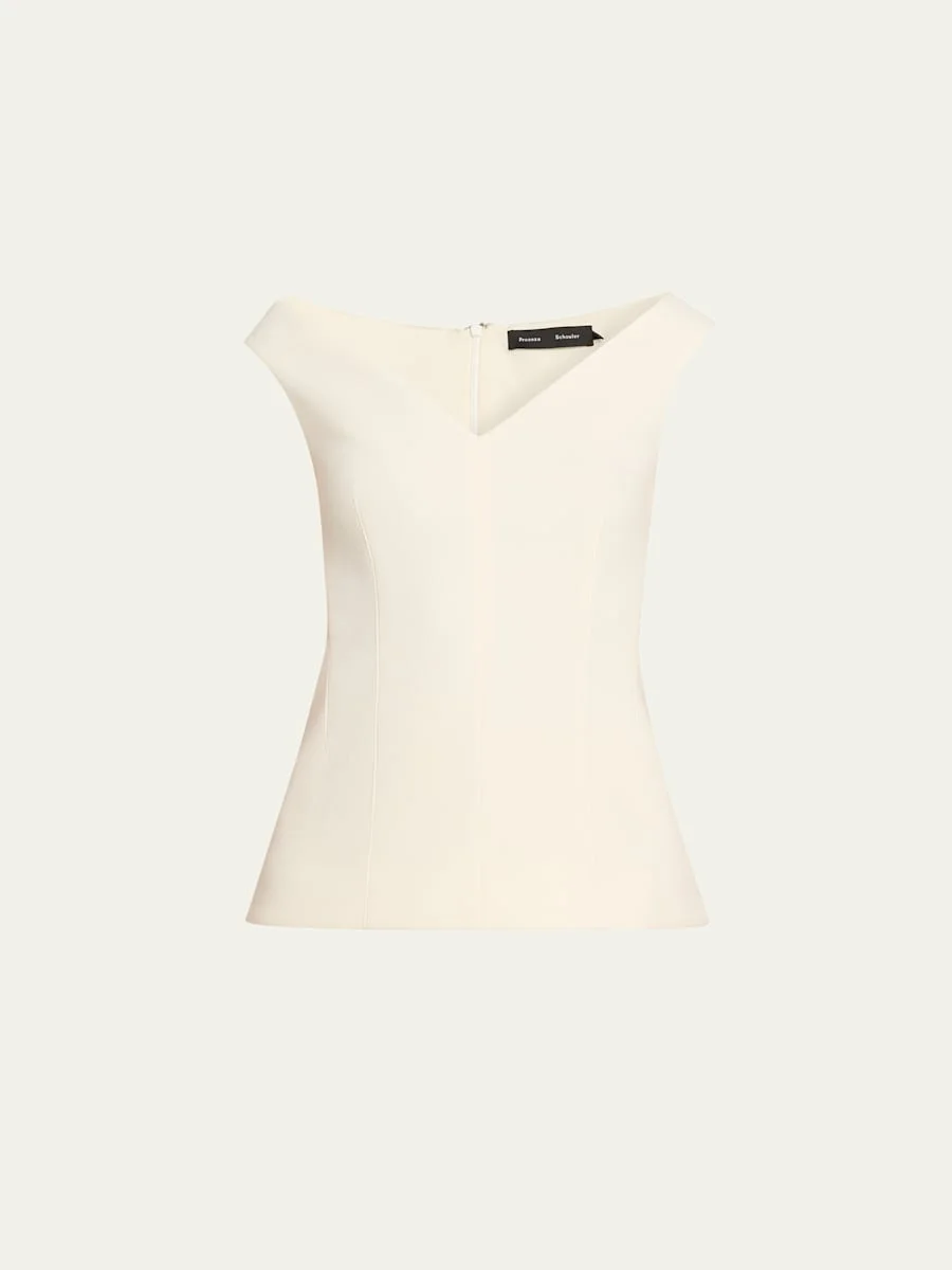 Proenza Schouler White Label "Mariam" structured top crafted from a sleek wool scuba fabric Wide Vneckline Cap sleeves Slim fit Hem sits at the hip Center back zip Viscose/wool/polyester Lining: Polyester Dry clean Imported SIZE amp; FITModel measurements: 5'10" tall Model is wearing a US size 4/Small