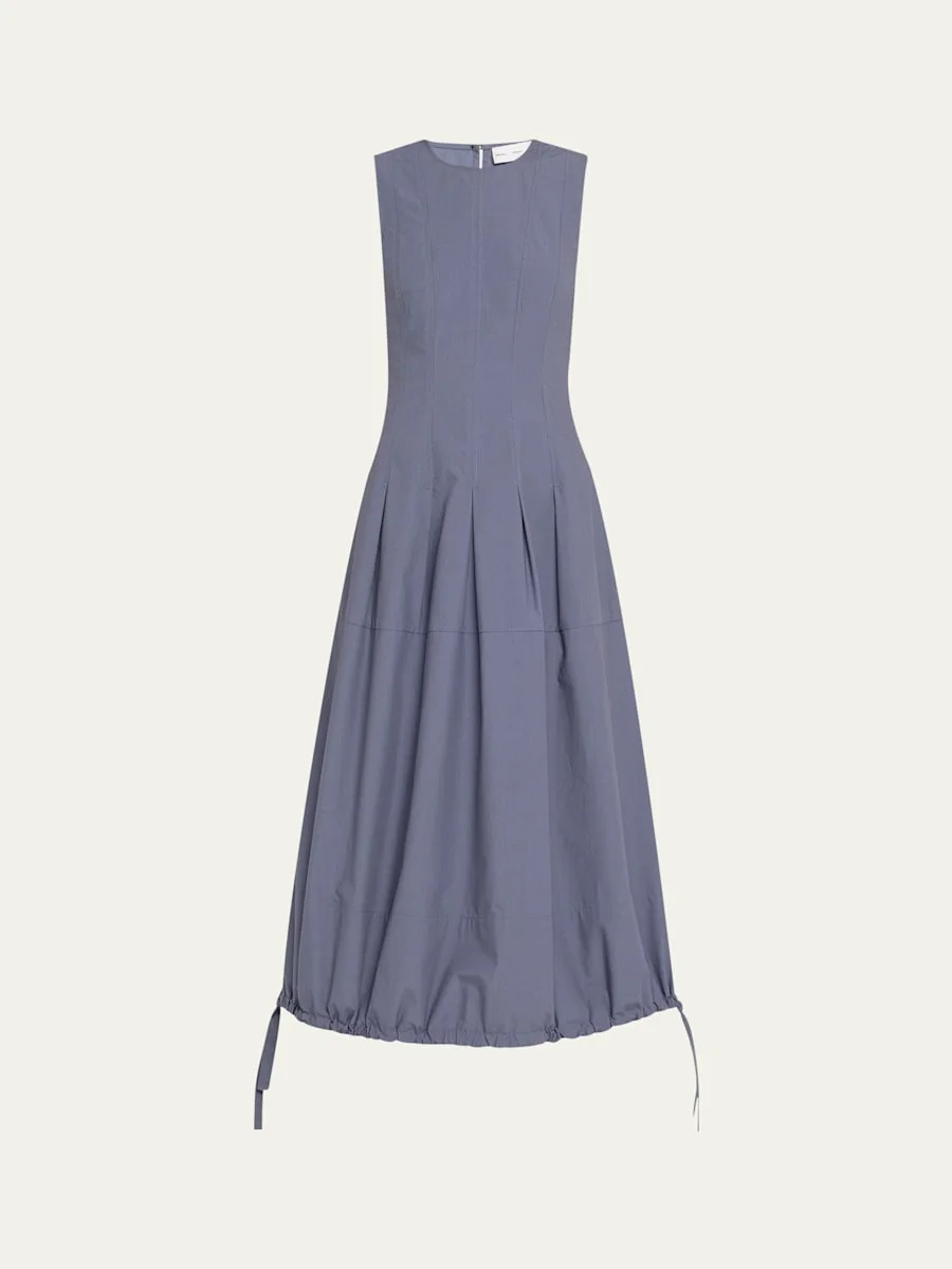 Proenza Schouler White Label "Marley" brushed poplin midi dress finished with an adjustable drawstring hem Crew neckline Sleeveless Seamed bodice Fit-and-flare silhouette Hem falls below the knee Back button closure Cotton/spandex Dry clean Imported Online Inquiries: BGS21_T6NV0| Store Inquiries: #5021979