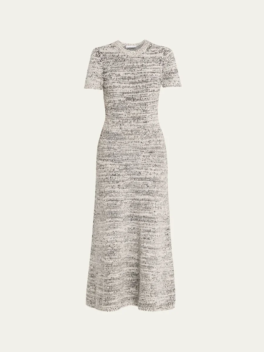 short-sleeve speckled knit midi dress