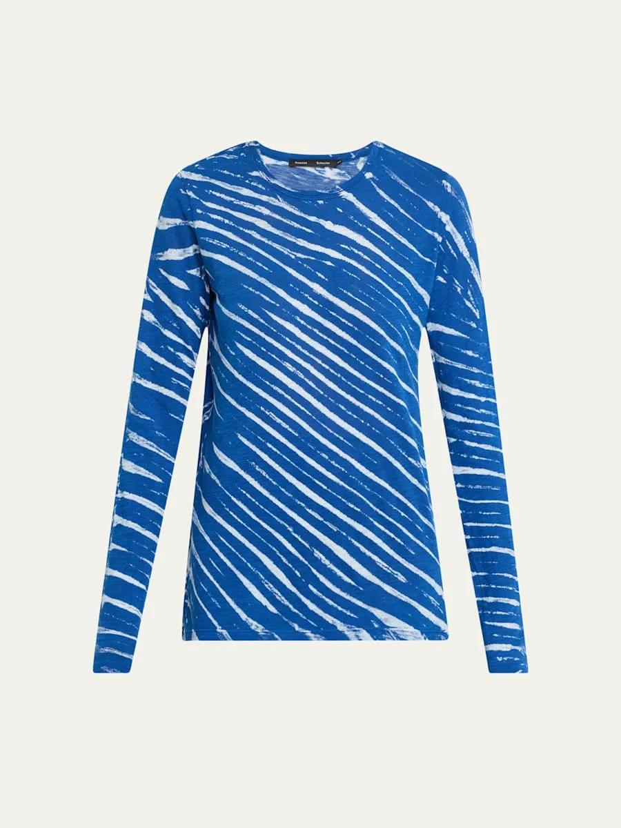 Proenza Schouler tissue jersey Tshirt featuring a tiedye print Crew neckline Long sleeves Relaxed fit Pullover style Cotton Unlined Made in USA