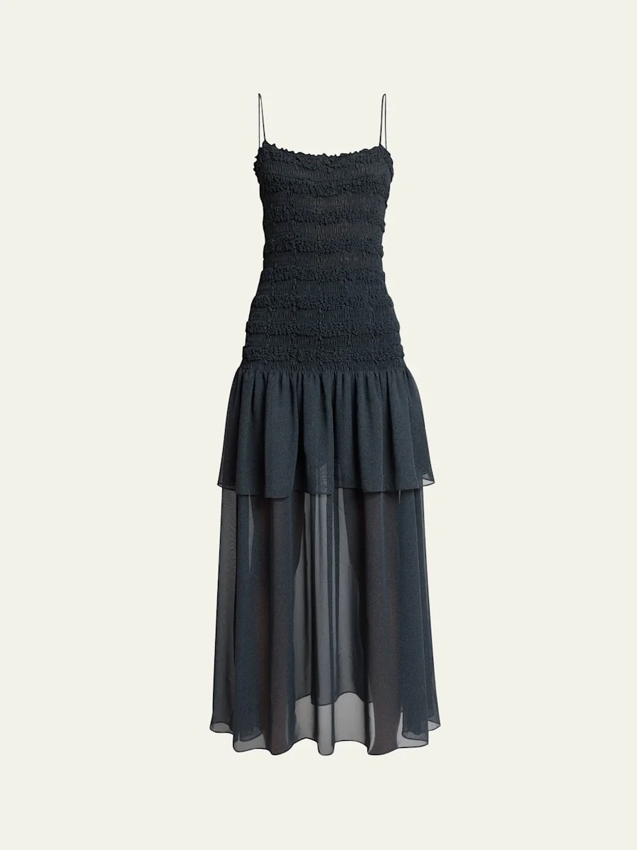 Michal Smocked Drop-Waist Georgette Maxi Dress