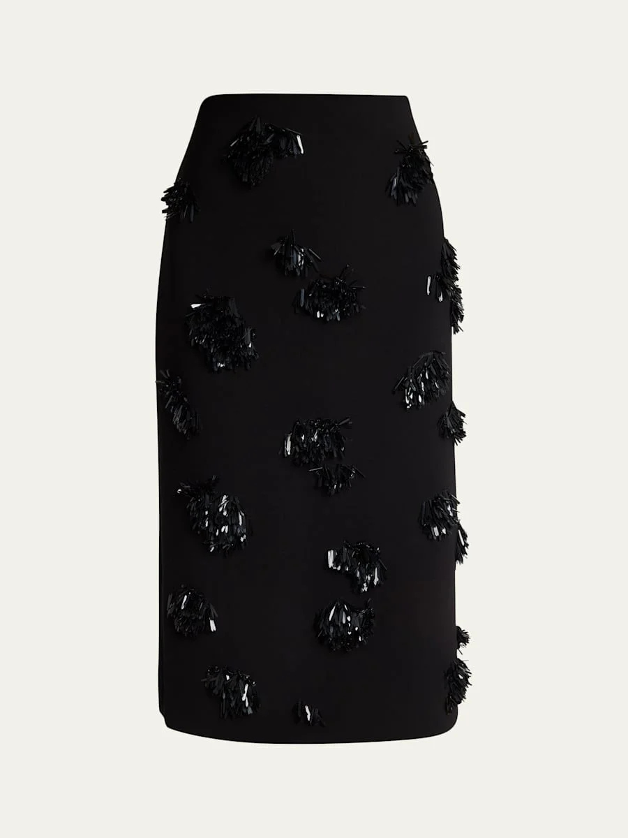 Designed in compact crepe, the "Moira" midi skirt by Proenza Schouler is embellished with tonal sequins and beads for a glamorous look. High rise Pencil silhouette Hem falls below the knee Center back zip Polyester/polyurethane/virgin wool Lining: Lycra® spandex/silk Professional cleaning recommended Imported