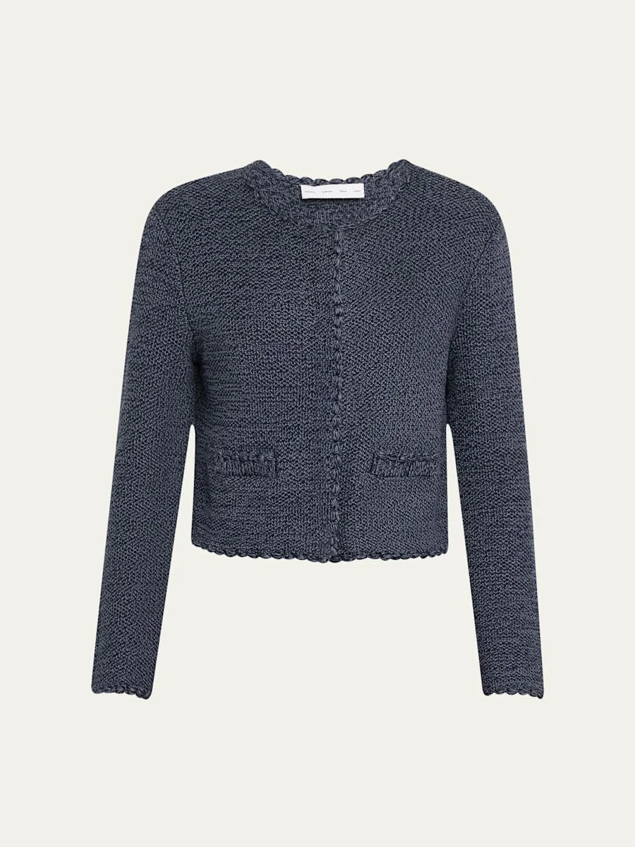 Proenza Schouler White Label "Nidia" cotton macrame jacket finished with scalloped trim Round neckline Long sleeves Front slip pockets Tailored fit Hem sits at the hip Concealed snap-front Cotton Dry clean Imported Online Inquiries: BGS21_T6NV3| Store Inquiries: #5021982