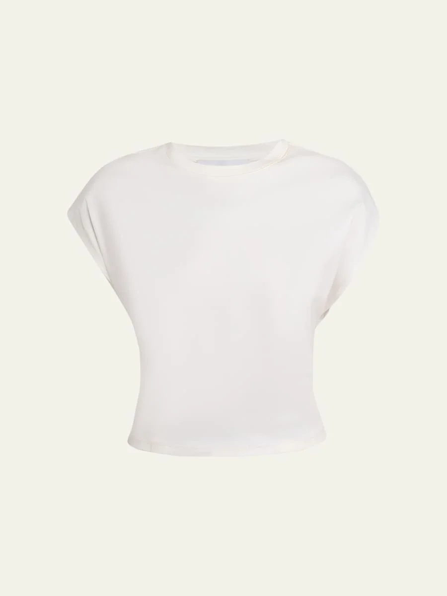 Proenza Schouler "Reeva" ultrasoft cotton tee elevated with gathering at the back for a cinched look Crew neckline Short sleeves Cropped fit Pullover style Cotton Dry clean Imported SIZE amp; FITModel measurements: 5'10" tall Model is wearing a US size 4/Small