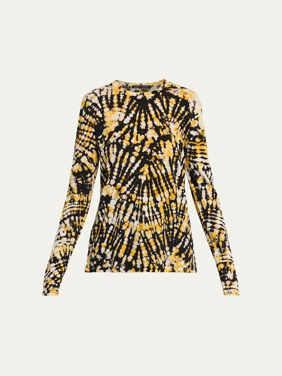 Veronica Beard "Reeva" ultrasoft cotton tee adorned with a vibrant tiedye print Crew neckline Long sleeves Slim fit Hem sits at the hip Pullover style Cotton Machine wash cold Imported SIZE amp; FITModel measurements: 5'10" tall Model is wearing a US size 4/Small