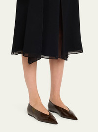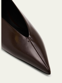 Designed with an exaggerated deep V-cut silhouette, the "Slash" ballerina flats by Proenza Schouler are crafted from slick nappa leather Flat heel Pointed toe Slip-on style Leather lining and outsole Made in Italy Online Inquiries: BGS21_X7BW6| Store Inquiries: #5369333