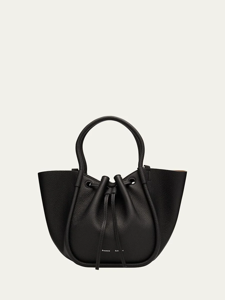 This small ruched tote bag from Proenza Schouler is crafted of grained calf leather and finished with the foiled logo on the front for a subtle elegance. Rolled top handles; 5.1" drop each Detachable, adjustable leather crossbody strap Drawstring and magnetic closure Approx. 9"H x 13.4"W x 6.5"D Made in Italy