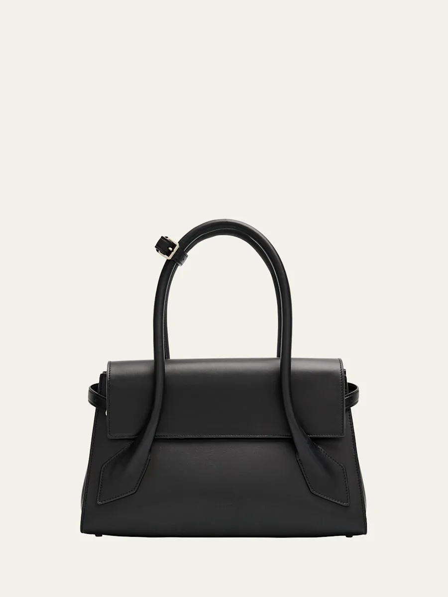 Proenza Schouler "Tate" top handle bag in smooth calfskin leather Rolled top handles with buckle strap Fold-over flap top with magnetic closure; side adjustable buckle strap Interior, one zip pocket, two slip pockets Lining: Leather Feet protect bottom of bag Approx. 5.1"H x 12.4"W x 7.4"D Leather method dry cleaning Made in Italy Online Inquiries: BGS21_V6JZ4| Store Inquiries: #5025428