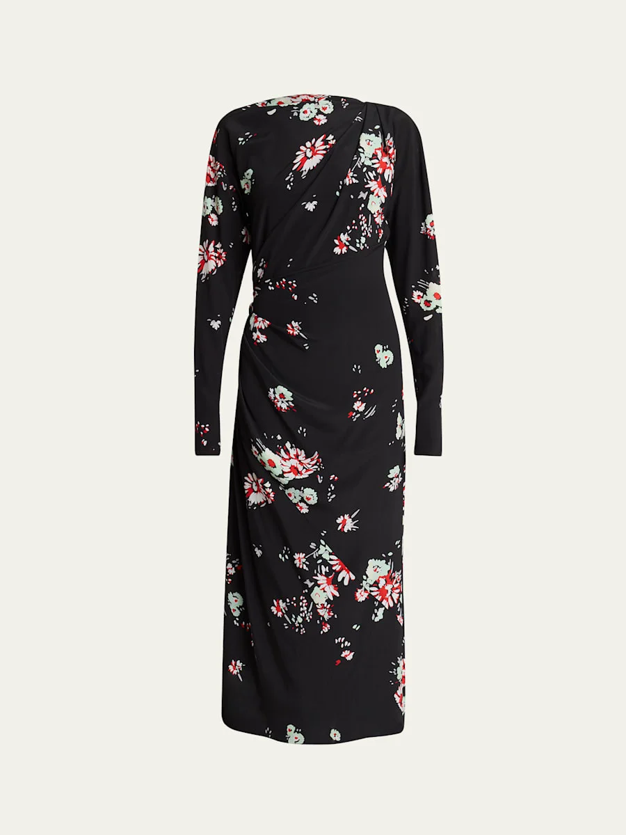 Trudie Floral Draped Long-Sleeve Dress