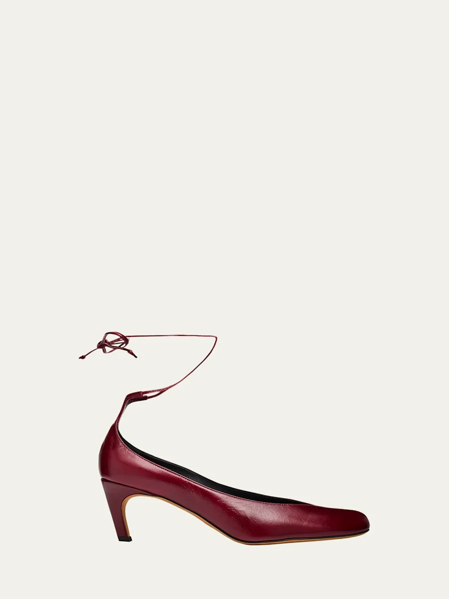Laced with tonal wrap-around ankle ties for versatile styling, the "Uma" pumps by Proenza Schouler are crafted from smooth calf leather in a low-profile silhouette 2.36 in / 60 mm covered kitten heel Almond toe Slip-on style Leather lining Rubber outsole Made in Italy Online Inquiries: BGS21_X7BWB| Store Inquiries: #5369338
