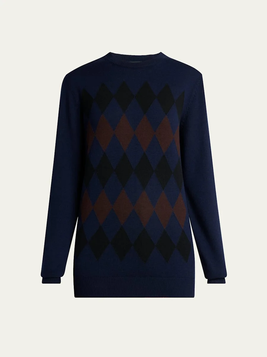 Featuring a classic arygle pattern, the "Vivian" sweater by Proenza Schouler is knitted from a lightweight blend of wool and silk for a luxurious hand feel. Crew neckline Long sleeves Classic fit Hem falls to the hip Pullover style Merino wool/silk Dry clean Imported Online Inquiries: BGS21_T8VGB| Store Inquiries: #5445127