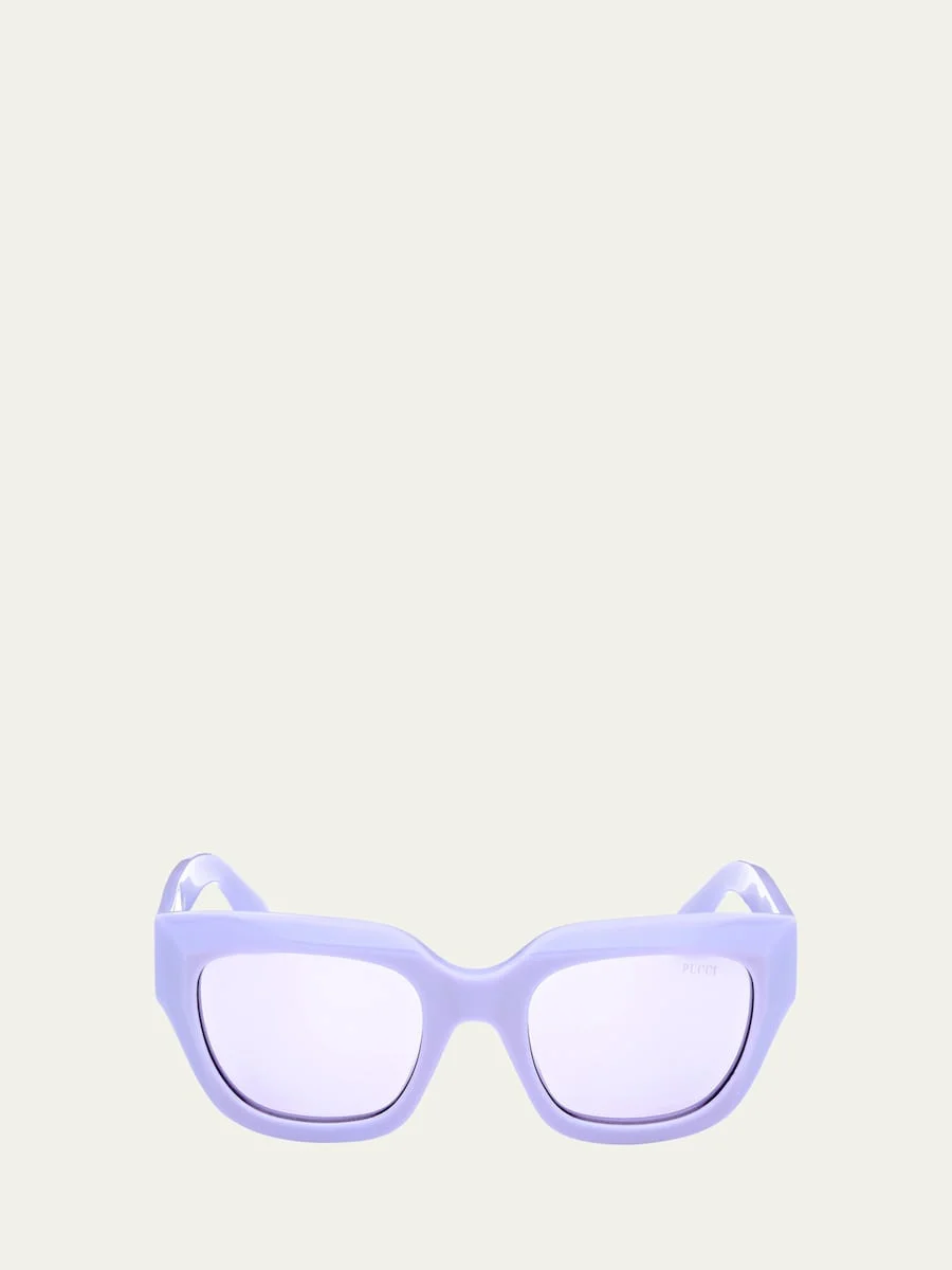 Emilio butterfly sunglasses in acetate Eye/bridge/temple (in mm): 51-22-140 Solid-color lenses Saddle nose bridge Thick, tapered arms Logo at temples Acetate Spot clean 100% UVA/UVB protection Made in Italy Proposition 65 warning for California residents Online Inquiries: BGS21_D5JPD| Store Inquiries: #4954044